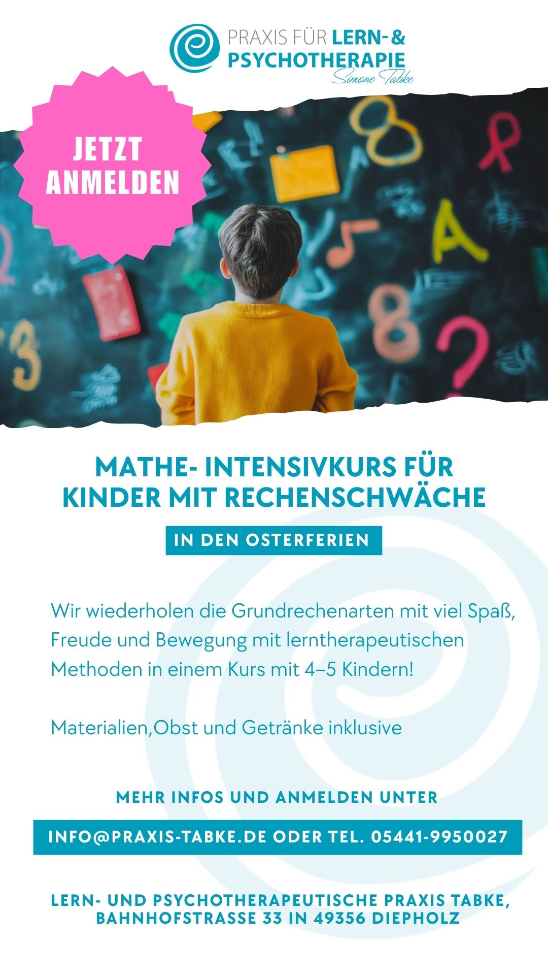 Mathe-Intensivkurs für Kinder mit Rechenschwäche.